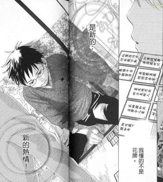 這麽久以來,千早是靠著什麽堅持下來的?必須承認,我第一次看漫畫看到這裏時,眼眶濕濕的。也許本身的經歷有些相似,代入了個人的情緒。如果不是喜歡一個人,你不會在做任何事的時候都想著他,做著和他相關的事物。尤其是你們之間隔著距離的時候,你會想從身邊的人事物找尋你們兩人之間的聯係。更好的說法,牽絆。我想去相信,千早和新的牽絆是花牌。如果沒有兩人對花牌的熱情,千早和新之間不會有戀情的發生。雖然不太想做比較,但至少來到第二卷,千早對新和太一的態度是有差別的。至於這種差別到底哪一個是戀情,哪一個是友情,大家自己衡量吧!