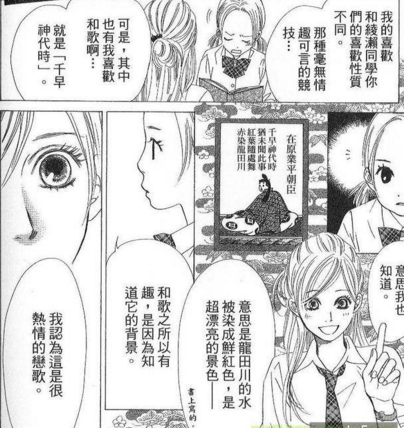 真心喜歡小奏啊!在遇到小奏以前,花牌對於千早來説衹是速度和聲音,和歌的含義什麽的不重要,唯一喜歡的衹有【千早神代時】,但她的喜歡大概僅止于那是她的名字的牌吧,知道的含義也衹是表面而已。